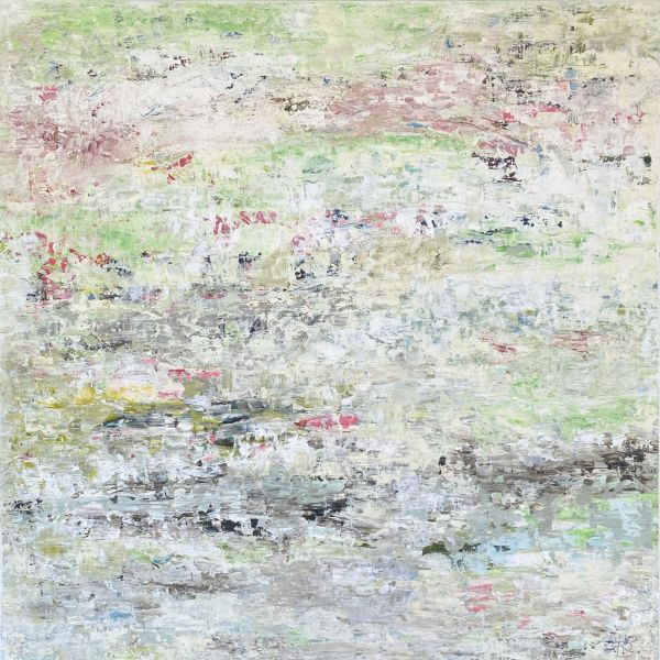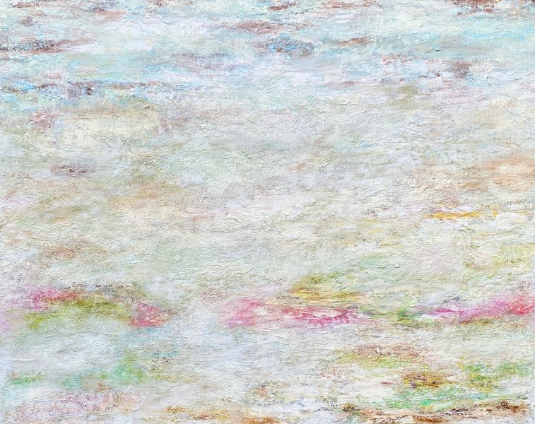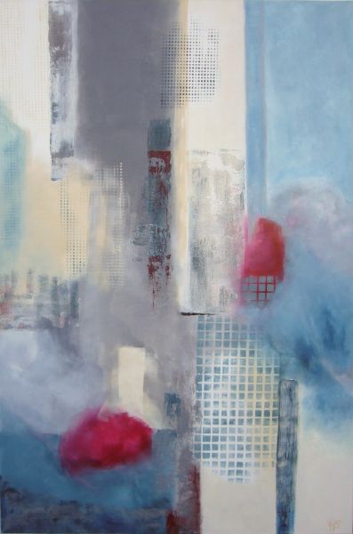 Durch diesen sich wiederholenden Schaffensprozess entstehen im Bild auch vertikale, in anderen horizontale Texturen, die an Landschaften erinnern. Da meint man dann Horizontlinien zu entdecken oder Wasserflächen. In anderen Arbeiten können es auch Wolken- oder Waldstrukturen sein. In ihrer Reihe der „Gefühlten Landschaften“ wird der Bildtitel zum Programm.