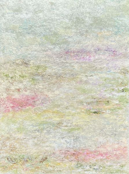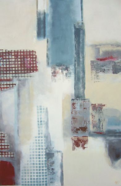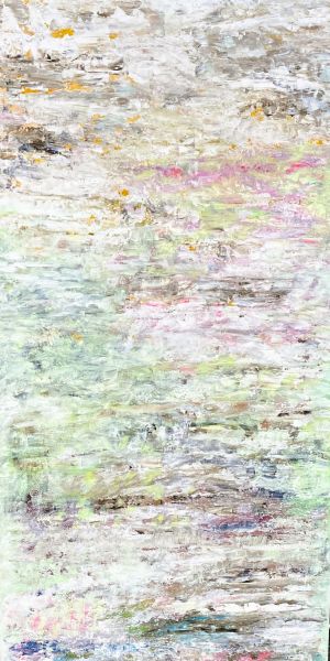 Durch diesen sich wiederholenden Schaffensprozess entstehen im Bild auch vertikale, in anderen horizontale Texturen, die an Landschaften erinnern. Da meint man dann Horizontlinien zu entdecken oder Wasserflächen. In anderen Arbeiten können es auch Wolken- oder Waldstrukturen sein. In ihrer Reihe der „Gefühlten Landschaften“ wird der Bildtitel zum Programm.